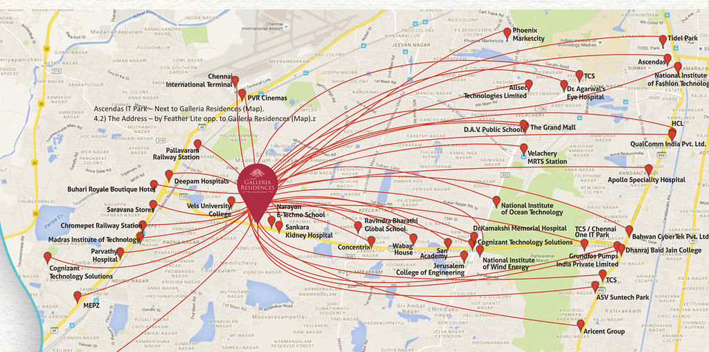 The 200 ft Radial Road in Pallavaram links Velachery-Tambaram main road and OMR with Chennai-Trichy Highway. Alliance Galleria Residences on Radial Road in Pallavaram make a unique landmark in this fast-developing stretch close to Schools & hospitals. Conveniently placed within easy reach of Chennai’s IT Parks and Chennai International Airport, Alliance Galleria Residences in Pallavaram saves you time and energy spent on your daily commute to and from the IT corridor.