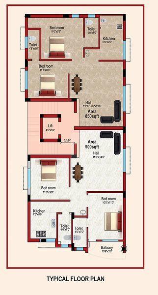R.C.C. framed structure with RCC columns, beams and slabs, Brick masonry filler walls, stilt plus Three floors with earthquake resistant design.