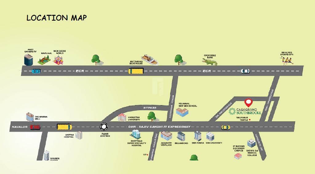 - Casagrand Southbrooke is a residential project located in Kalavakkam, This residential project comprises Of residential apartment with modern decor as well as basic amenities. The area is also well connected to major hospitals, schools and colleges.