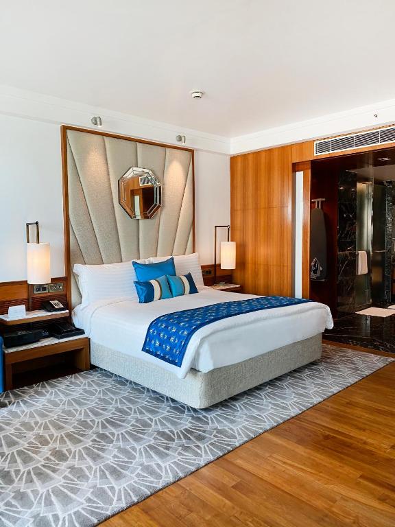 Our well-appointed rooms and suites are designed to provide an unmatched level of luxury and comfort, with each room equipped with top-of-the-line amenities that guarantee a memorable and unique stay. The rooms feature plush bedding, free Wi-Fi, a flat-screen TV with cable channels, a mini-fridge, tea and coffee-making facilities, a work desk, and a view of either the Arabian Sea or the city skyline.