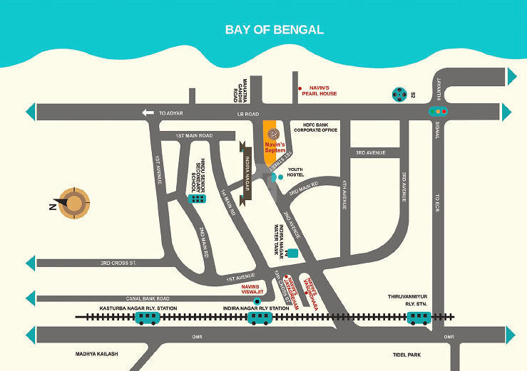 Favourably located just 650 mtrs off OMR-IT expessway @ Adyar providing excellent connectivity to OMR IT parks, Taramani IT parks, Offices in central locations like Thiruvanmiyur, Besant Nagar, etc