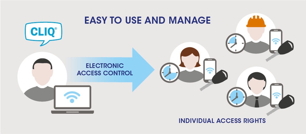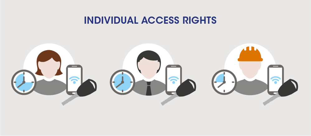 One key is enough for each employee – your own or subcontractors’ – as it has individual access rights to the necessary premises. The validity of the access rights can be determined as desired, for example for one day or for only five minutes. After the period of validity has ended, a lost key is not a security risk. If a mobile solution is connected to the system, the unlocking rights can be verified and updated whenever a lock is opened.