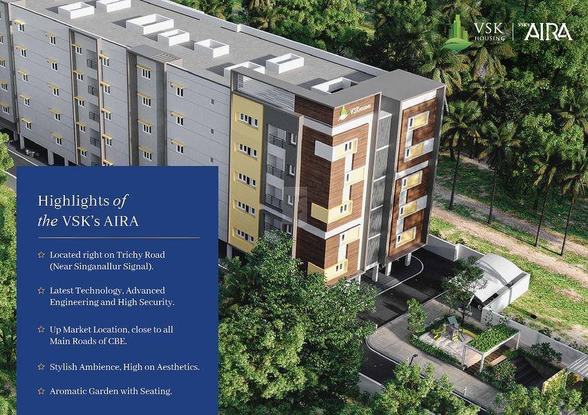 VSK Aira, an abode of magnificent Apartments with all modern features required for a soulful living. Nestled amidst a posh locality, Uppilipalayam in Coimbatore, this Residential haven flaunts a resort-like environment that effectively eases off the day's tiredness and makes you discover the difference between a concrete house and a loving home. The builders of the project, VSK Housing India have ensured that all homes at VSK Aira offer privacy and exclusivity to its inhabitants. It is a place that sets a contemporary lifestyle for its residents. The VSK Aira offers 109 luxurious, environmental friendly 2 BHK and 3 BHK beautiful houses.